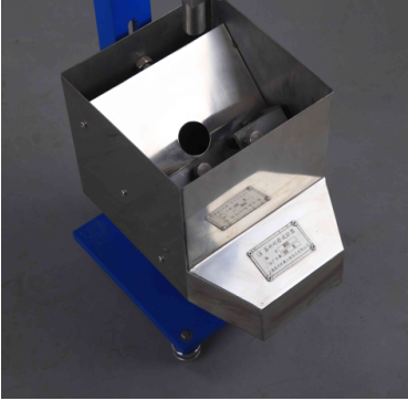 (3).将一块金属试板用试板夹具(5)固定,上有一5/32 英寸(4mm)的小孔,孔的中心需对准导管的中心,秤量通过试板孔落到容器中的砂量,如果通过孔的砂量是落在试板上总砂量的90% ~93%则认为仪器是标准的。